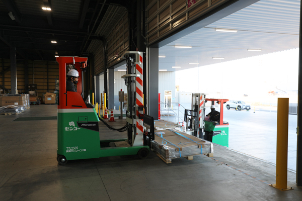 設備垂直搬送機3基、ドックレベラー、倉庫内空調、休憩室、会議室、ロッカー完備、駐車場スペース(乗用車89台)、駐輪場